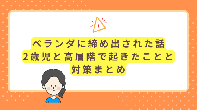 ワンオペ育児 ベランダに締め出された話。2歳児と高層階で起きたことと対策まとめ 2025年11月13日 MIYUKI https://oneopemiyu.com/wp-content/uploads/2025/08/logo_0829.png みゆきのワンオペおすそわけ